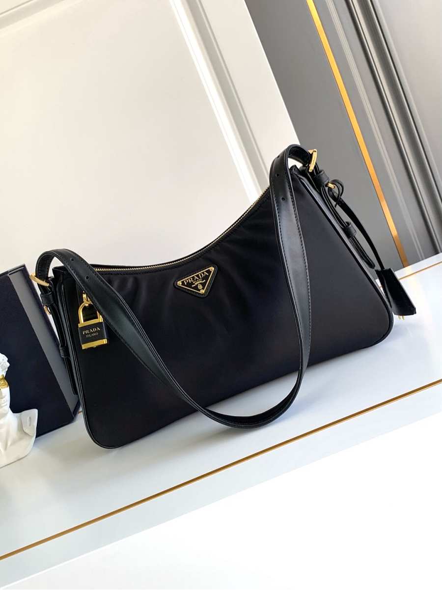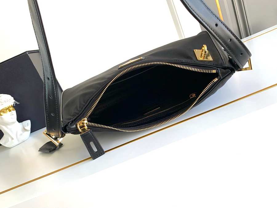 Prada Black Re-nylon And Saffiano Leather Shoulder Bag 22x16x5cm