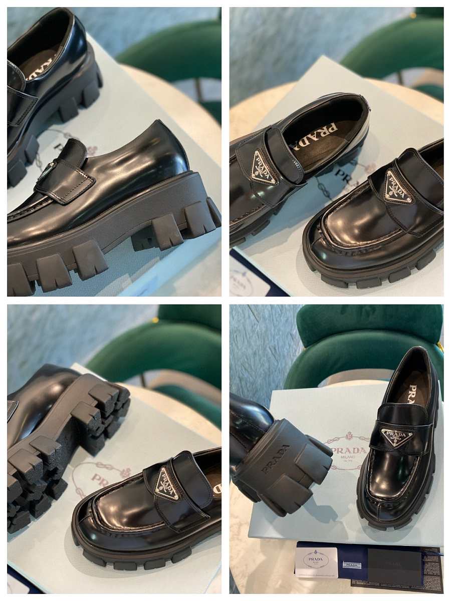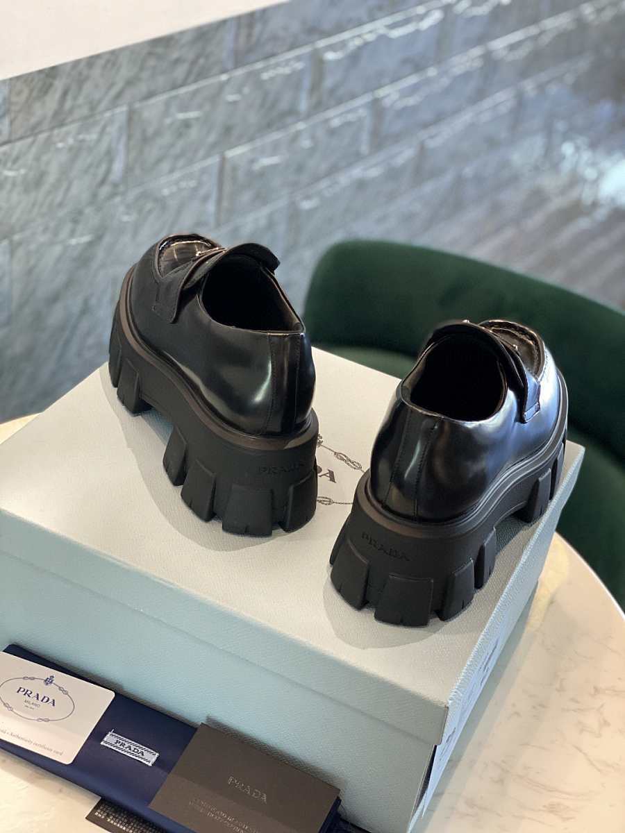Prada Monolith Brushed Leather Loafers Black