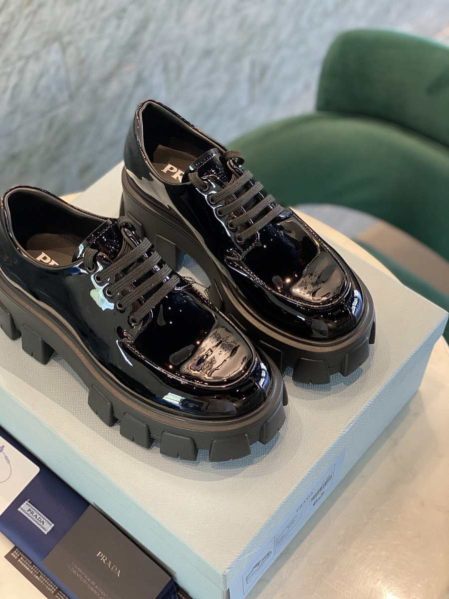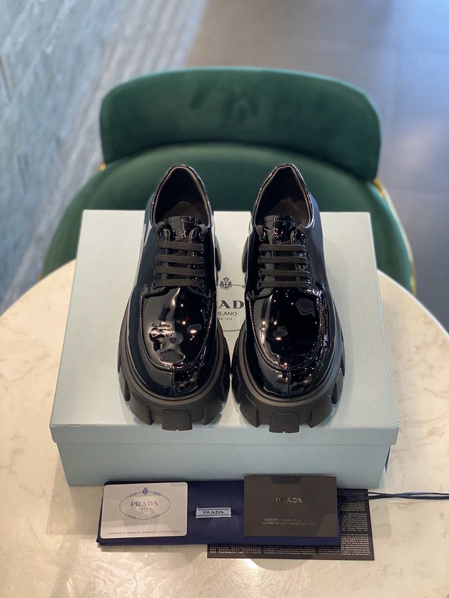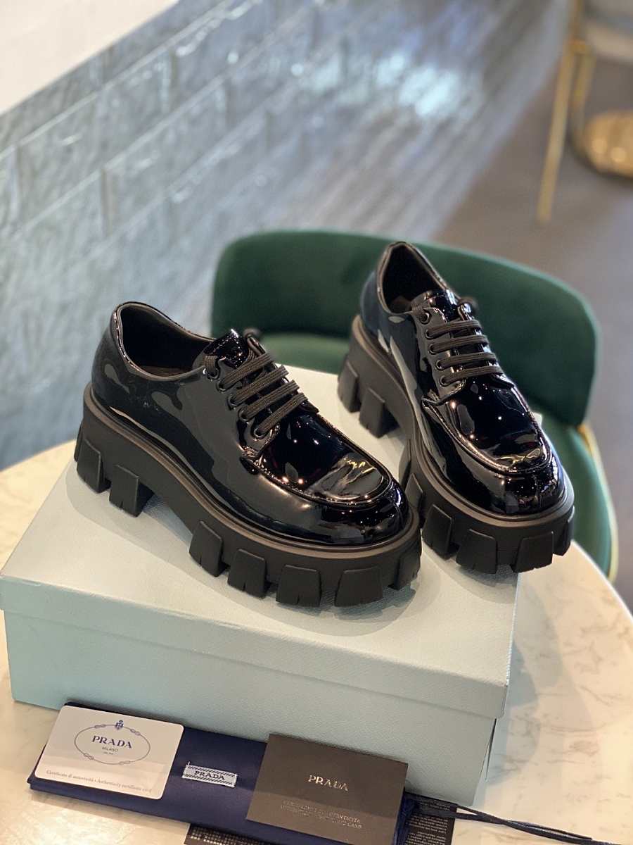Prada Monolith Laces Brushed Loafers Black