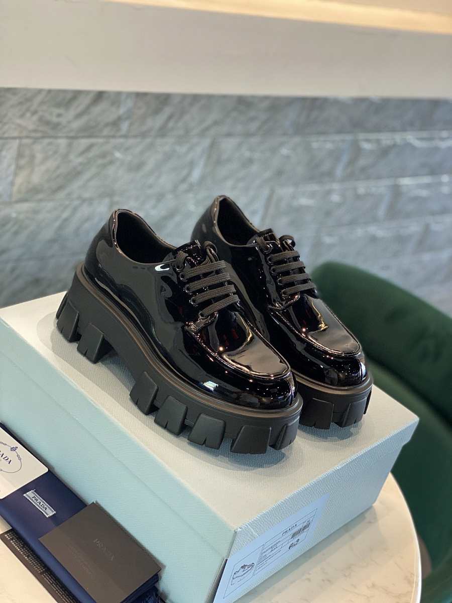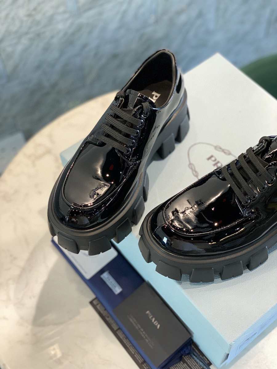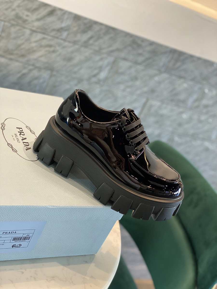 Prada Monolith Laces Brushed Loafers Black