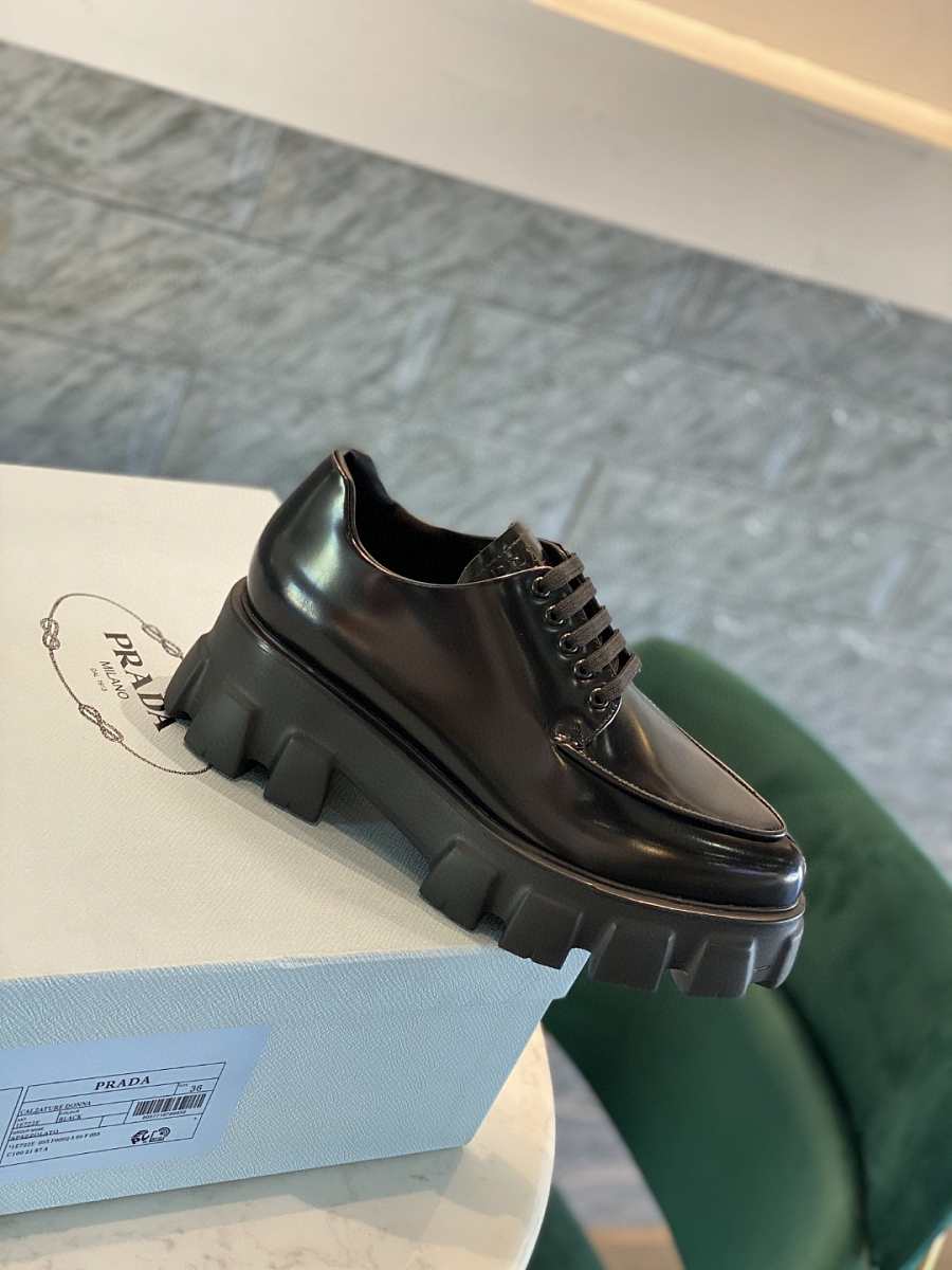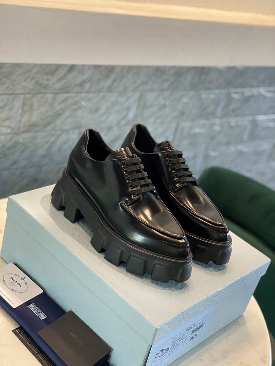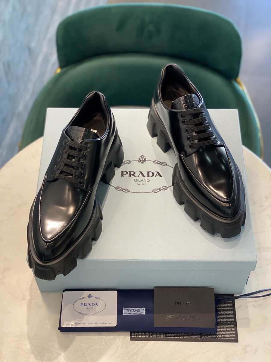 Prada Monolith Pointy Laces Leather Loafers Black