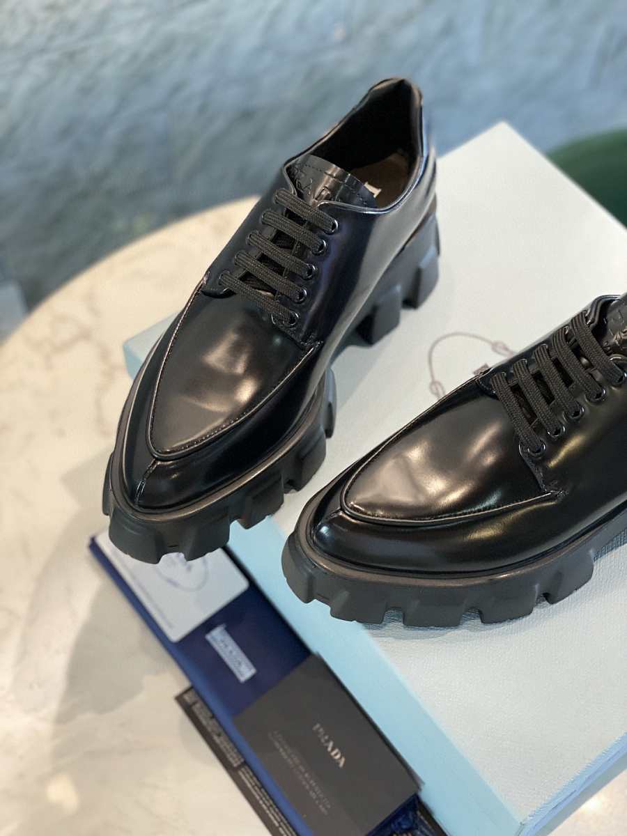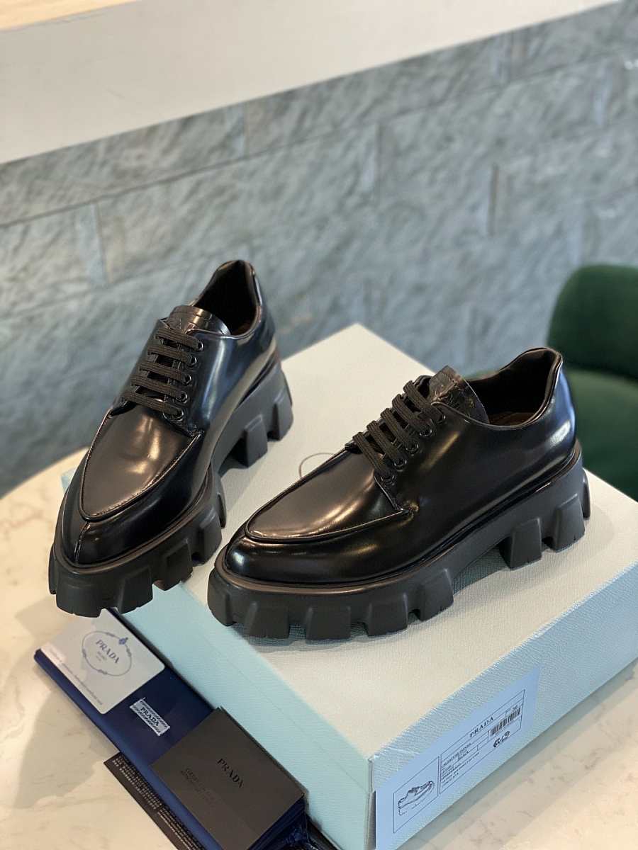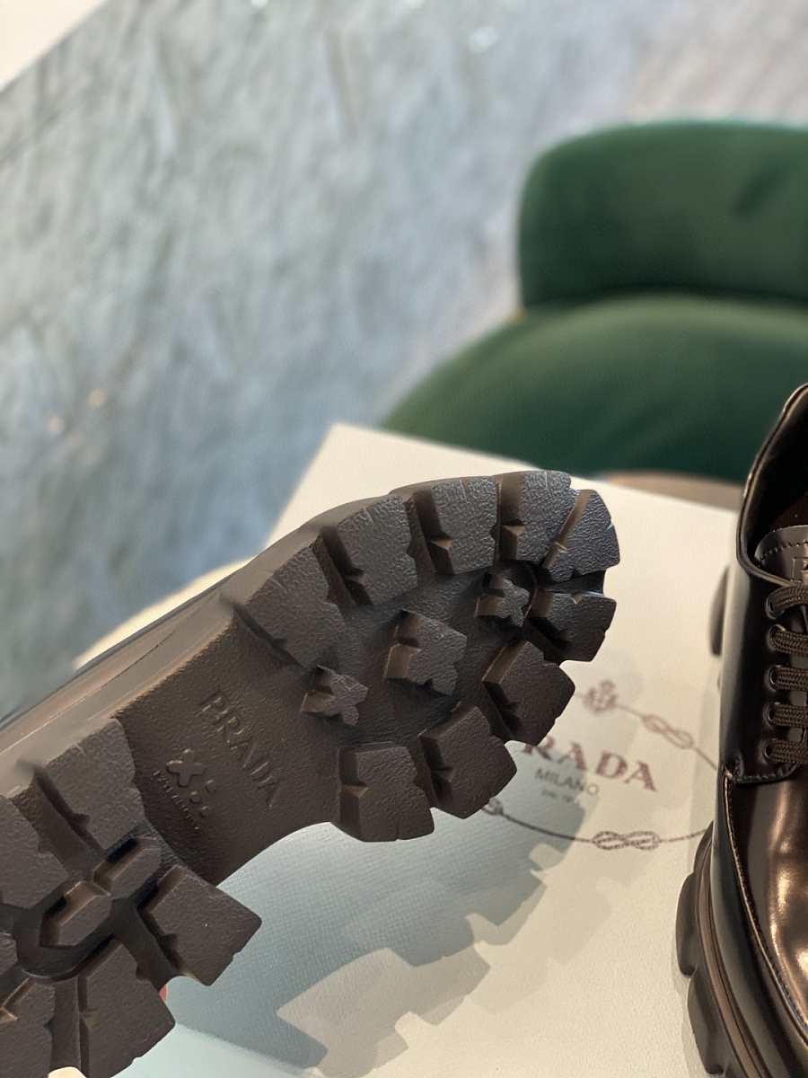 Prada Monolith Pointy Laces Leather Loafers Black