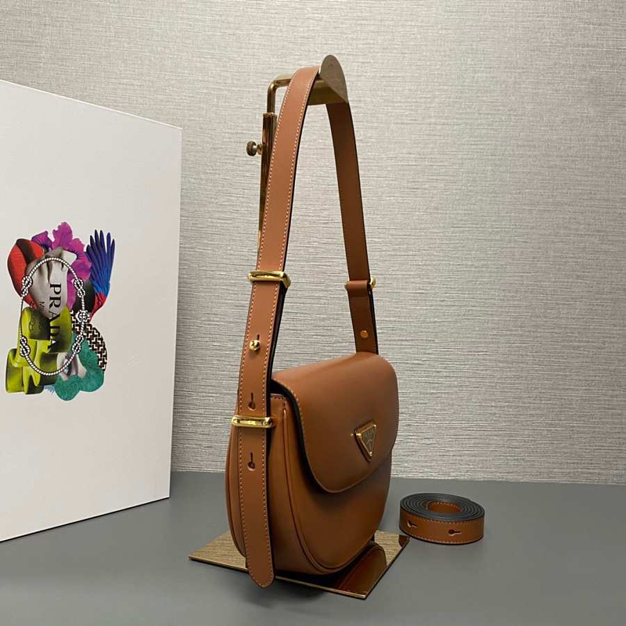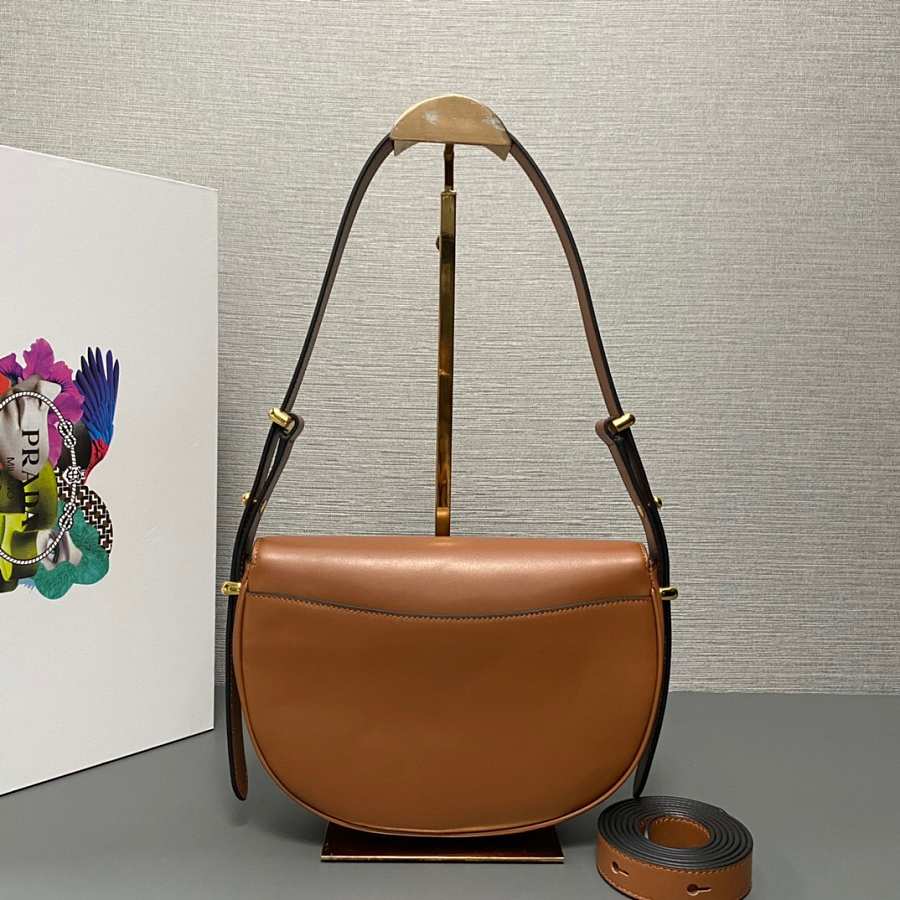 Prada small leather shoulder brown color bag 22x17x5.5cm
