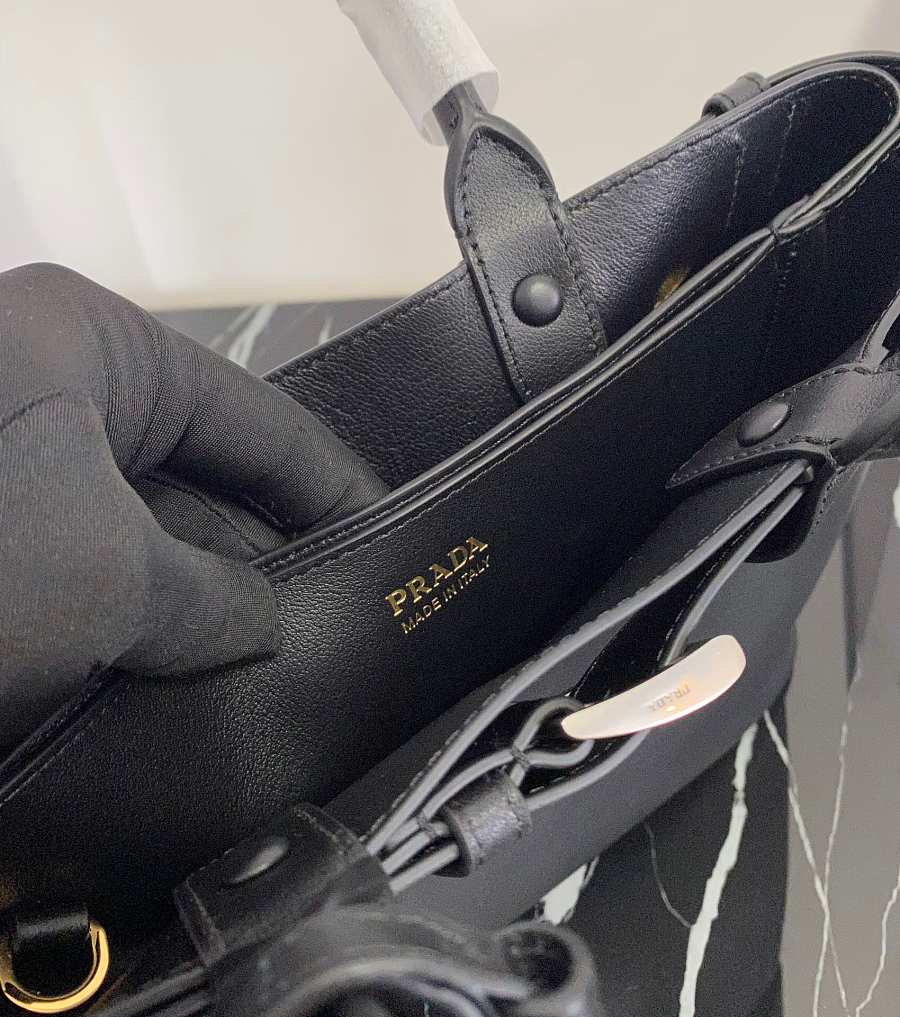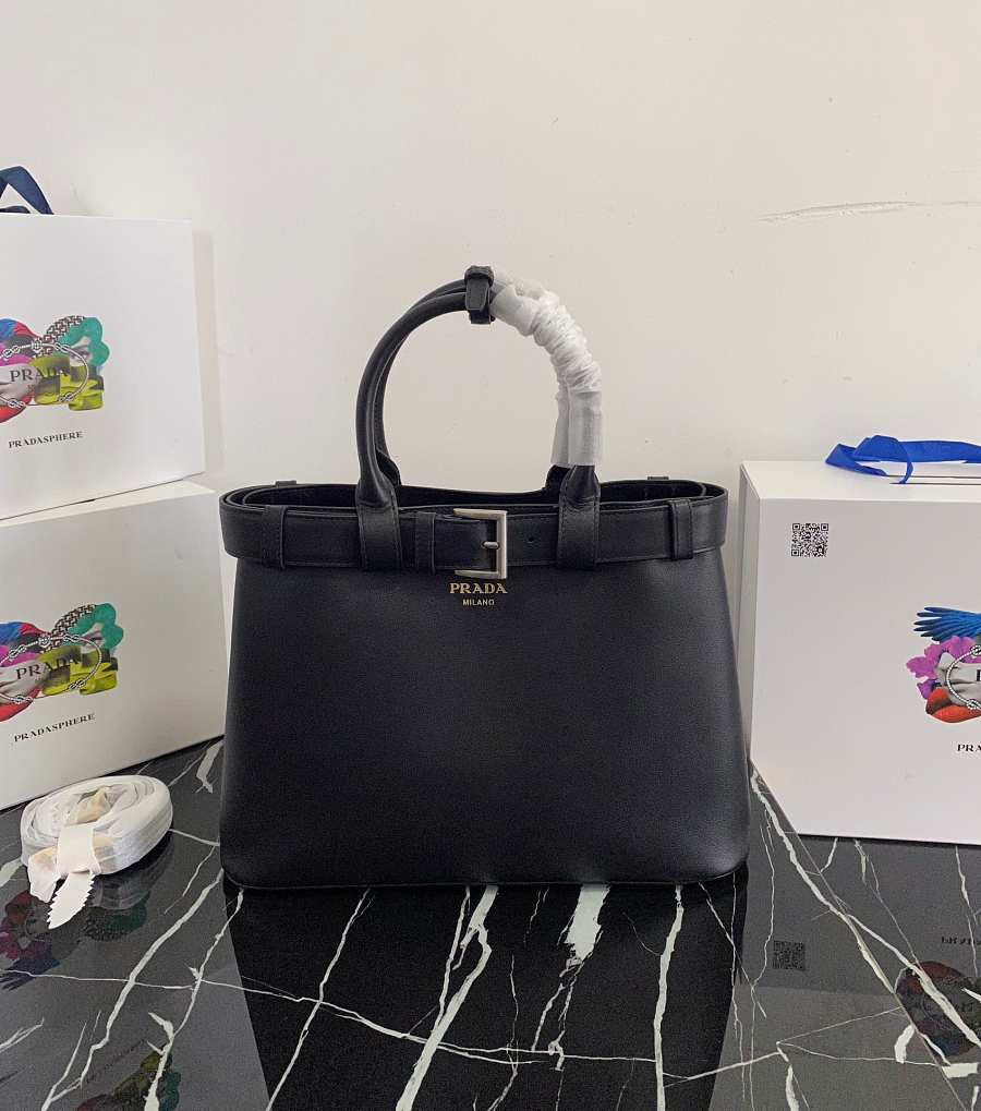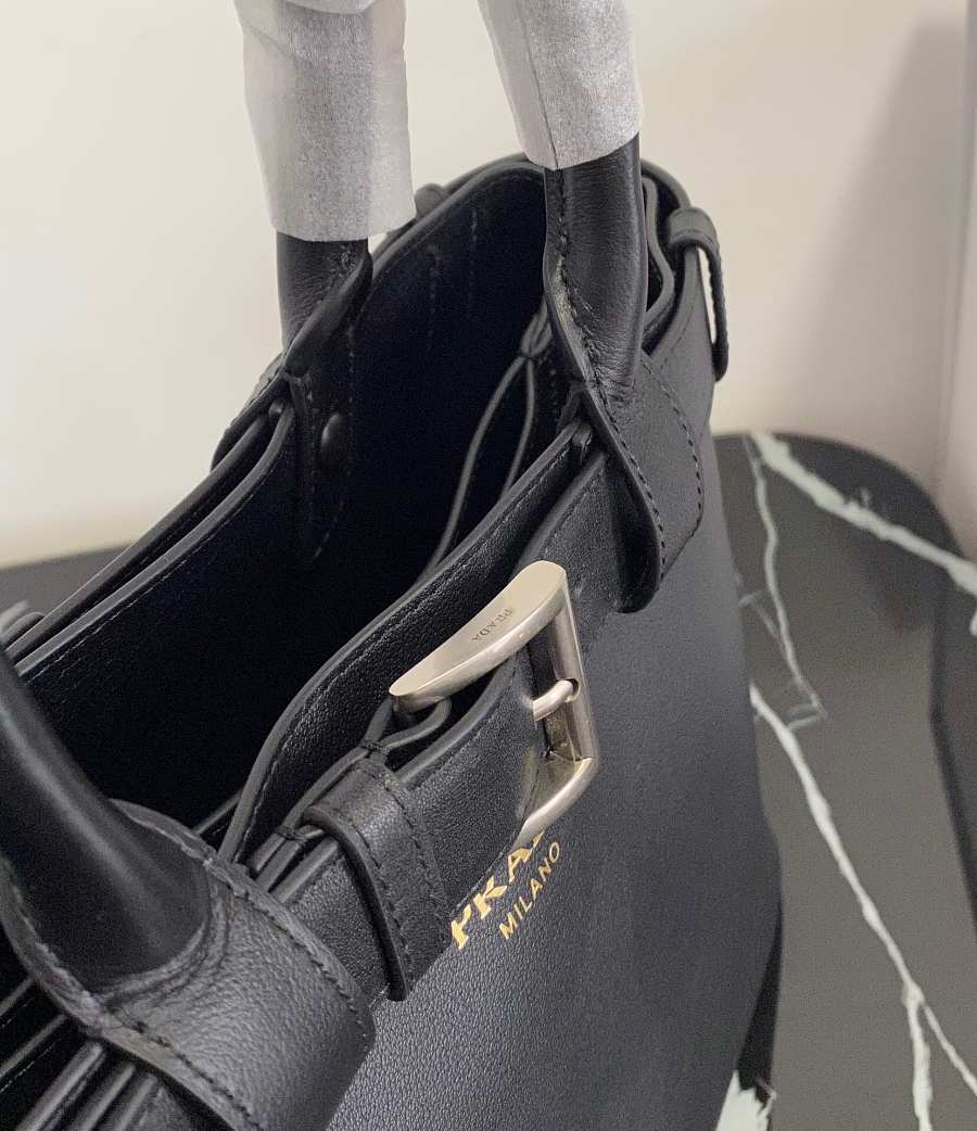 Prada Women's Buckle Medium Leather Bag (Black) 35x25x14cm
