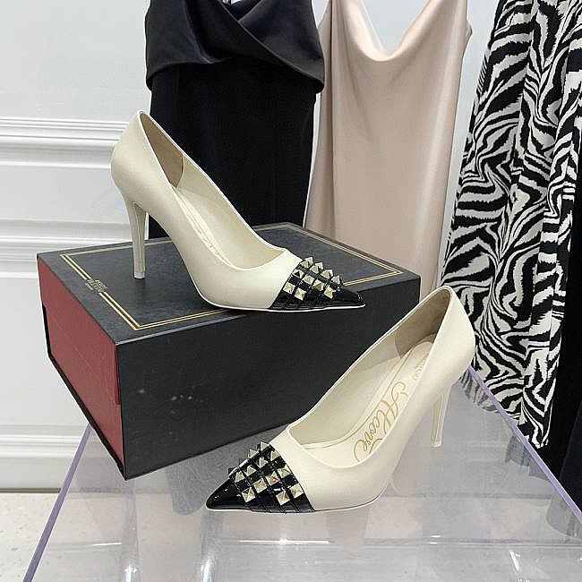 ROCKSTUD ALCOVE KIDSKIN AND PATENT-LEATHER PUMP 90 MM WW0S0DF8YGDL11