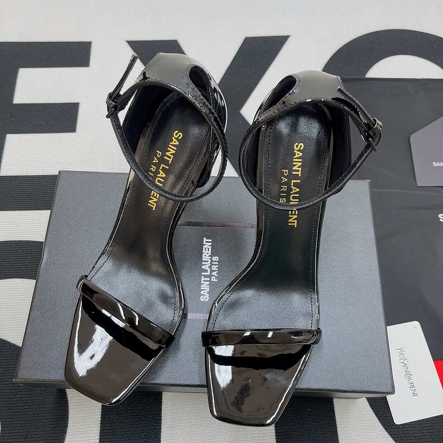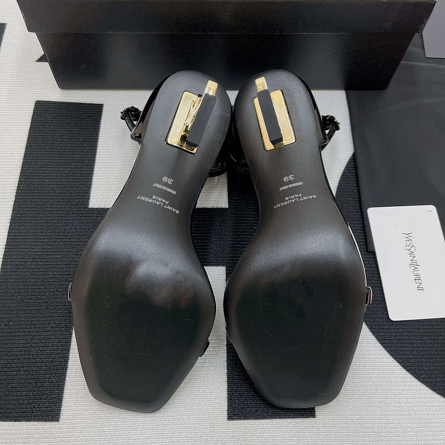 SANDALS WITH NARROW STRAPS AND METAL INTERLOCKING YSL MONOGRAM HEEL