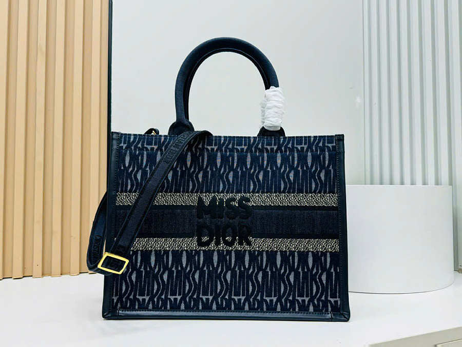 Small Dior Book Tote Blue Miss Dior Allover Embroidered Denim and Calfskin 26.5 x 22 x 14 cm