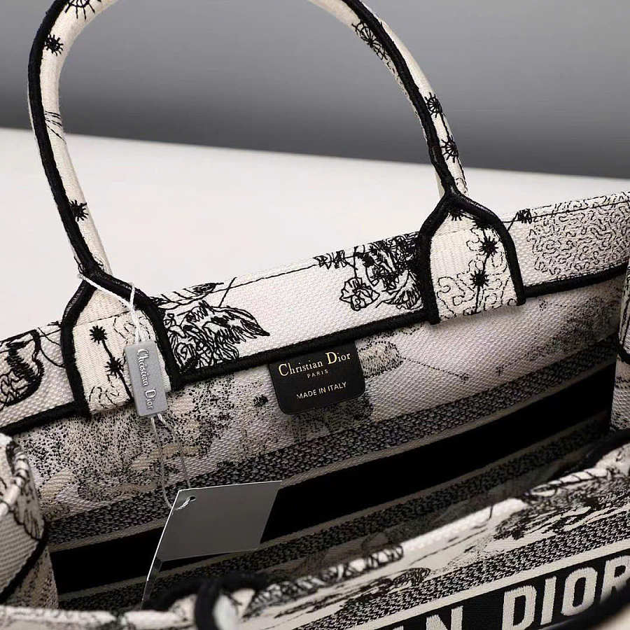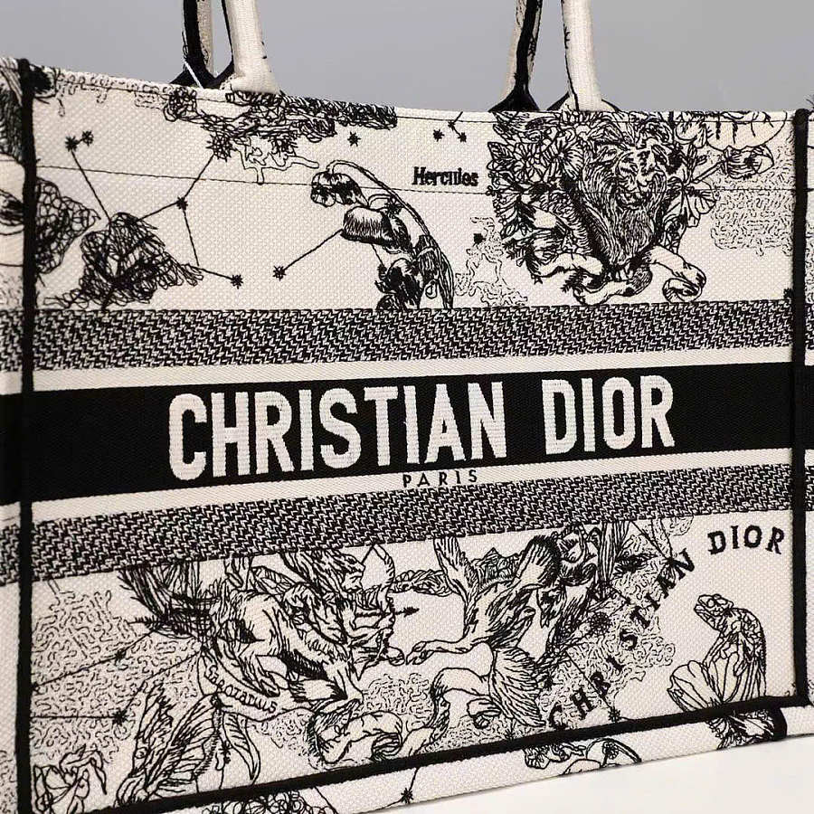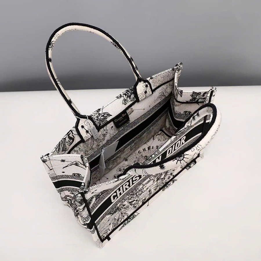 Small Dior Book Tote Latte and Black Toile de Jouy Zodiac Embroidery 26.5 x 22 x 14 cm