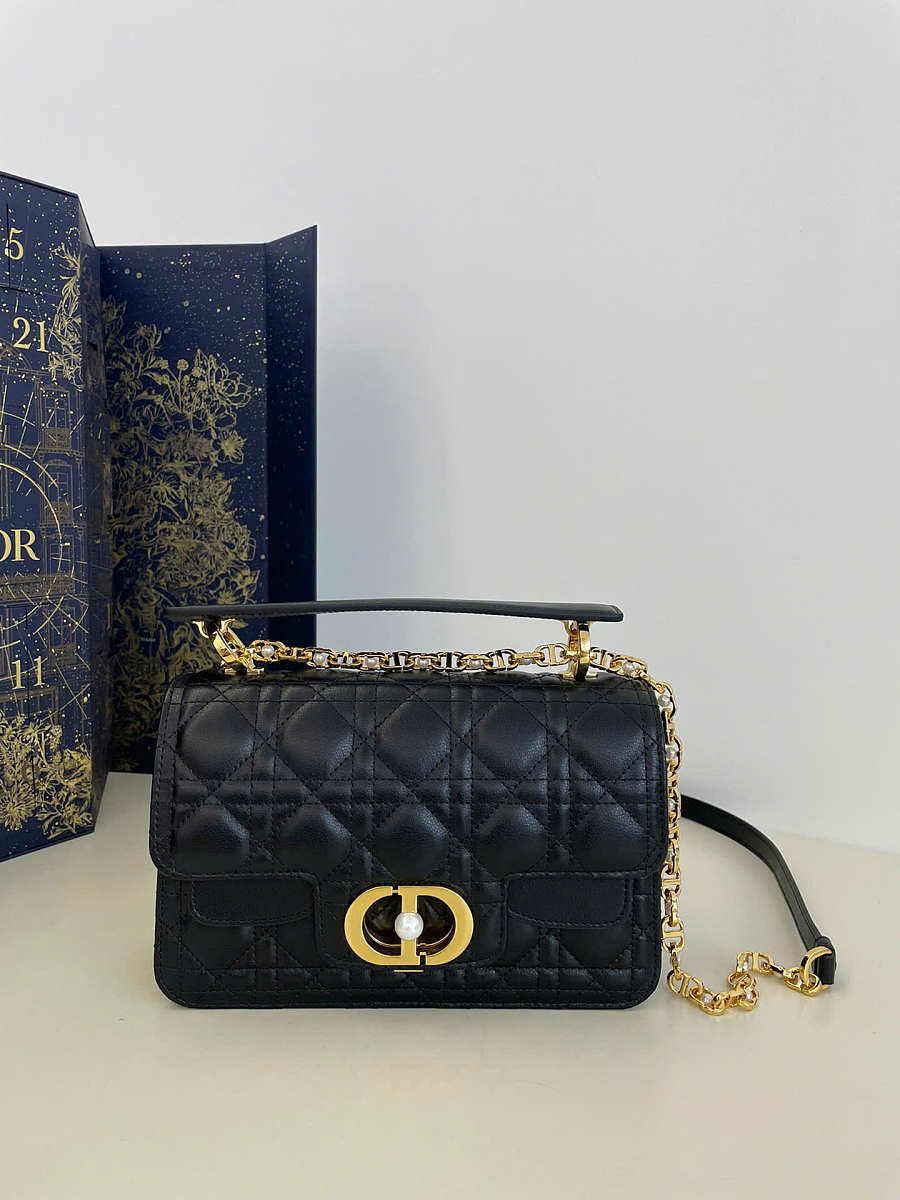 Small Dior Jolie Top Handle Bag Black Cannage Calfskin 22 x 14 x 8 cm