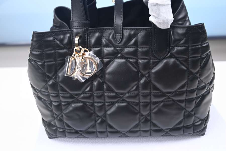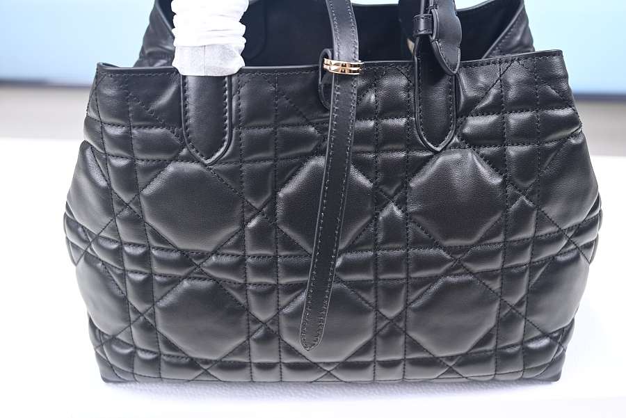 Small Dior Toujours Bag Black Macrocannage Calfskin M2822OSHJ_M900 23x14x12cm