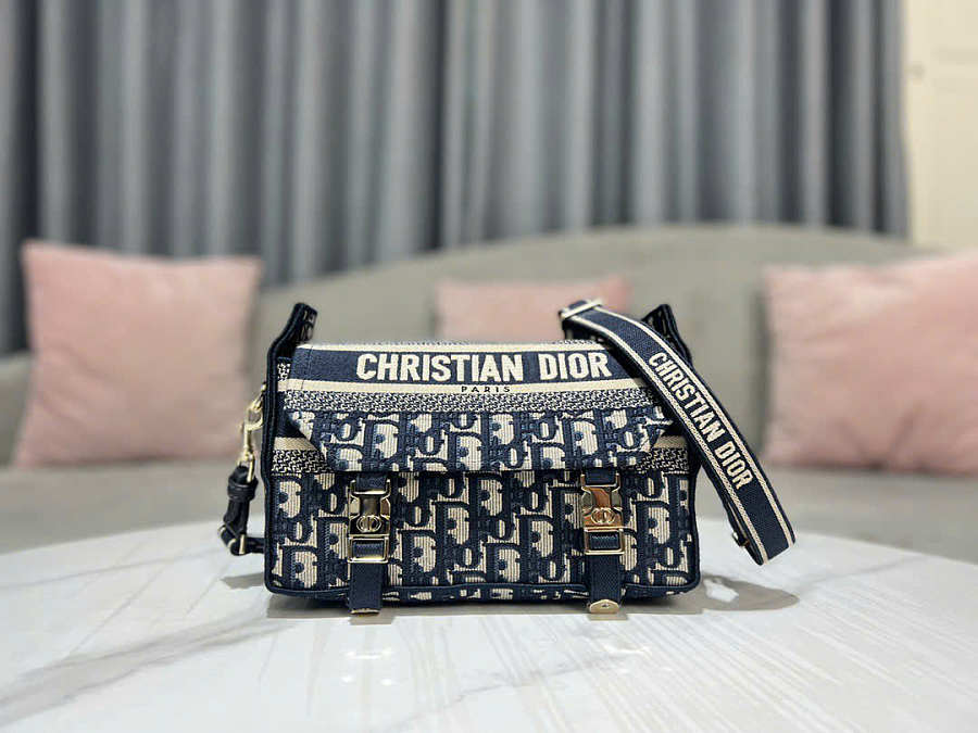 Small Diorcamp Bag - Blue Dior Oblique Embroidery 23 x 15 x 8 cm