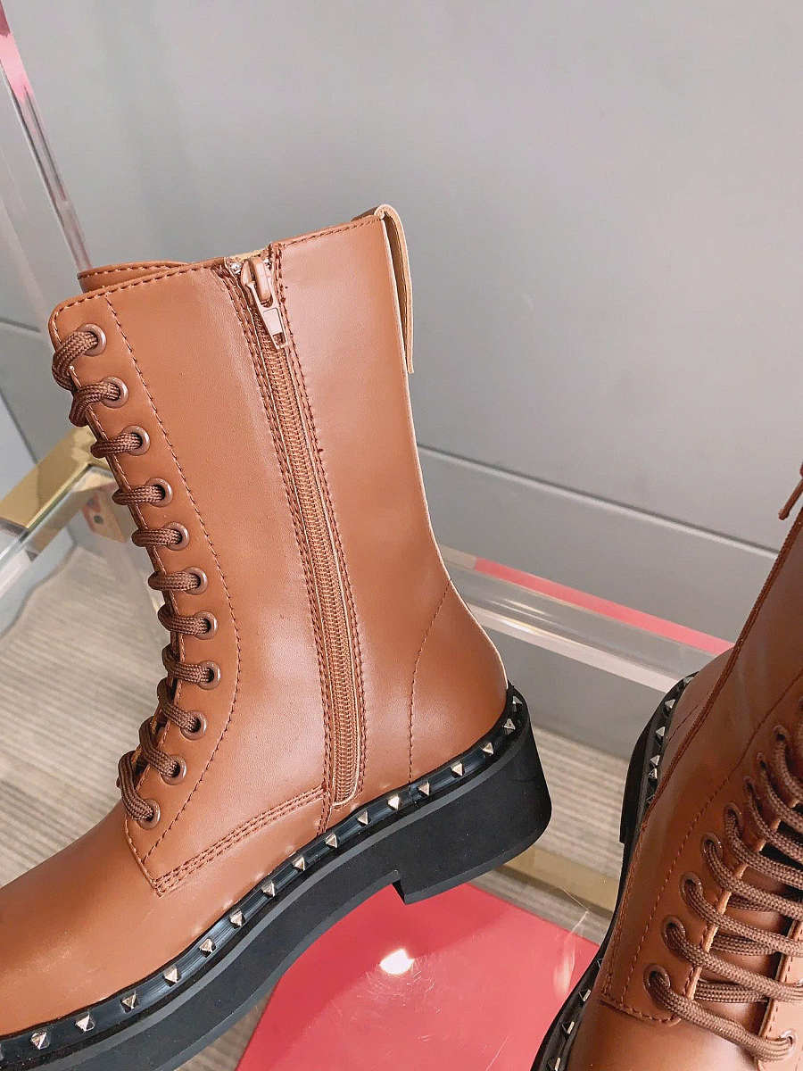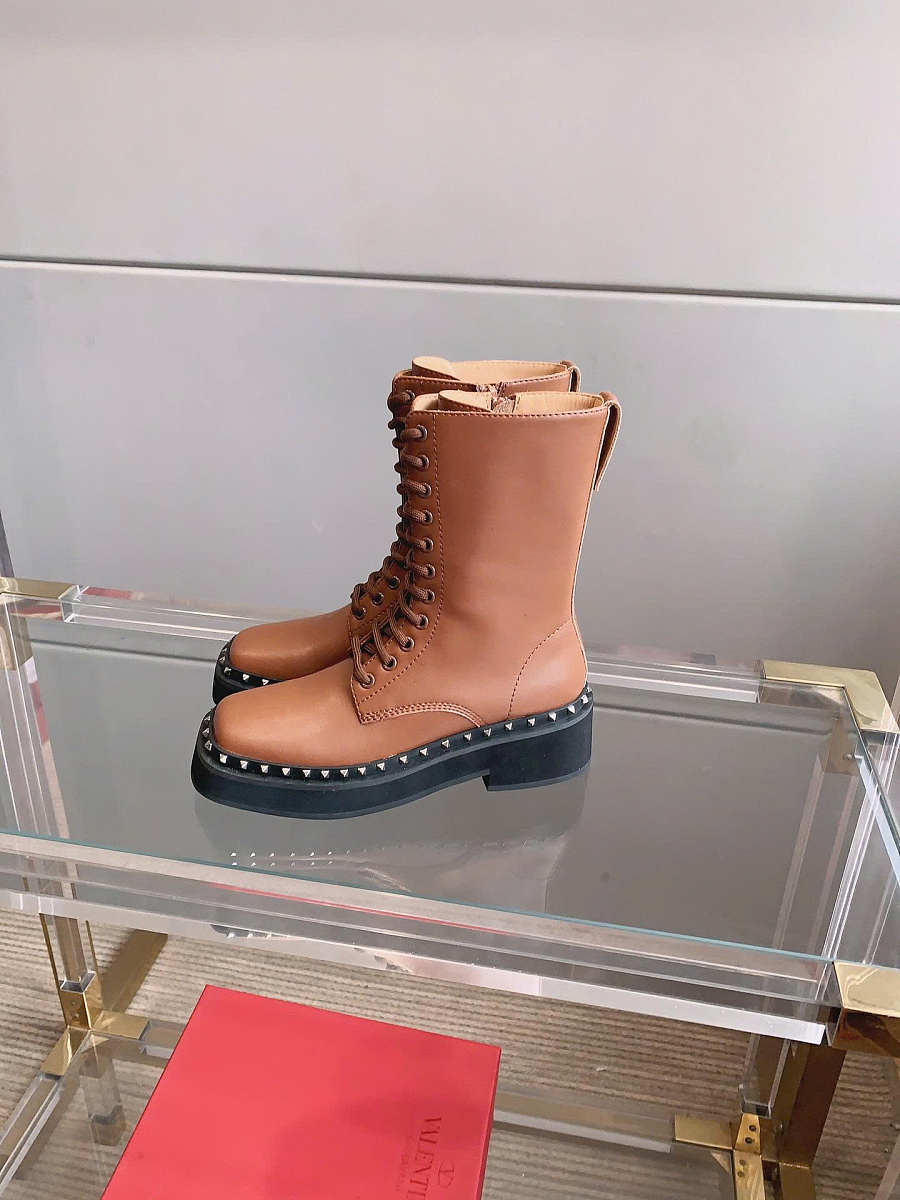 Valentino Garavani Rockstud Leather Combat Boots 1647597337352101