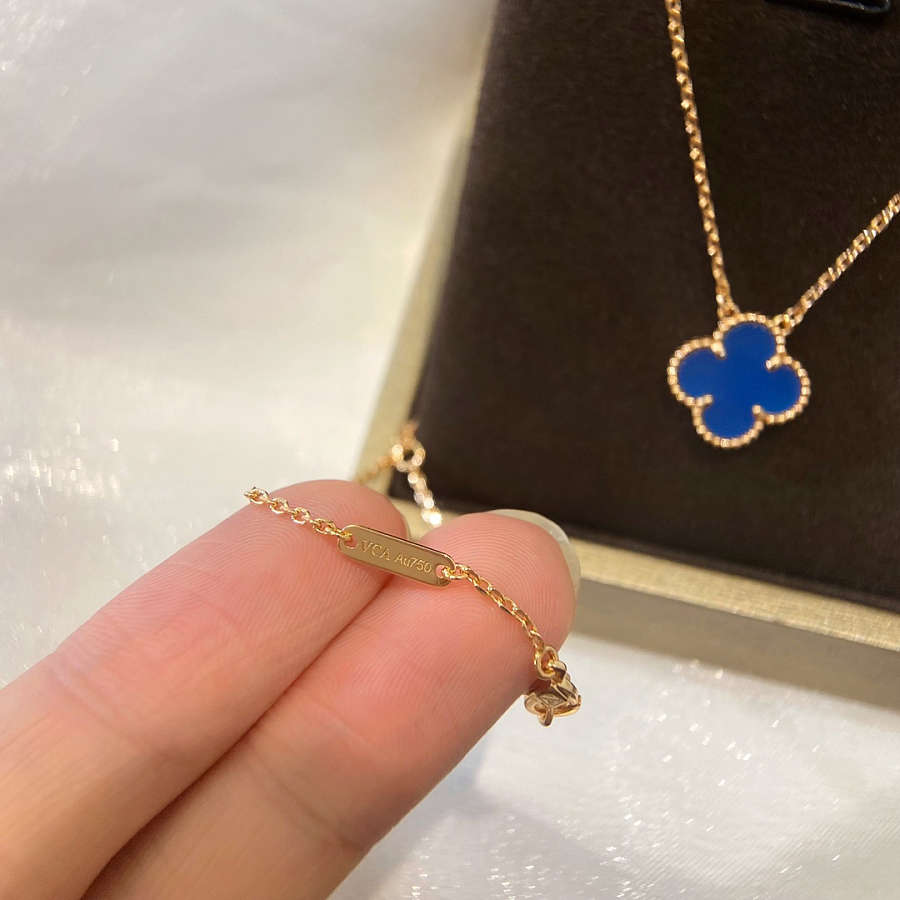 Van Cleef & Arpels classic single-flower four-leaf clover necklace Blue agate