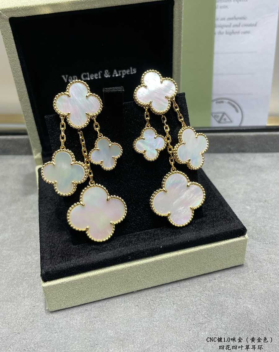 VCA Premium White Mother-of-Pearl Four-Flower and Four-Leaf Clover Earrings