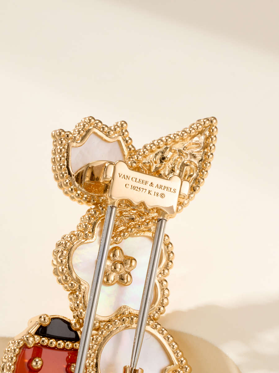 New VCA Lucky Spring Necklace Plum blossom, ladybug, and leaf