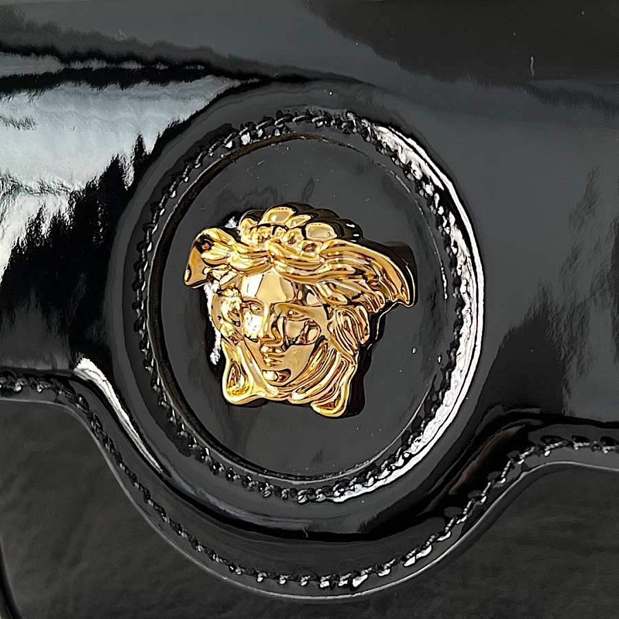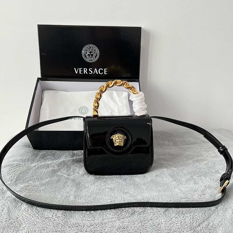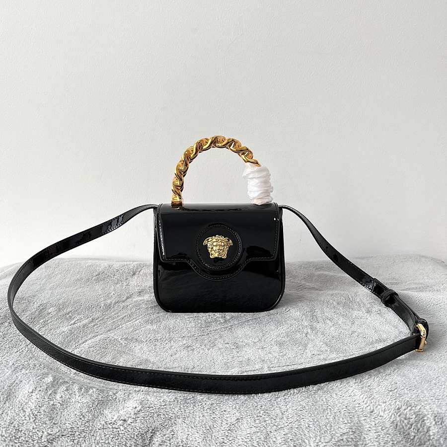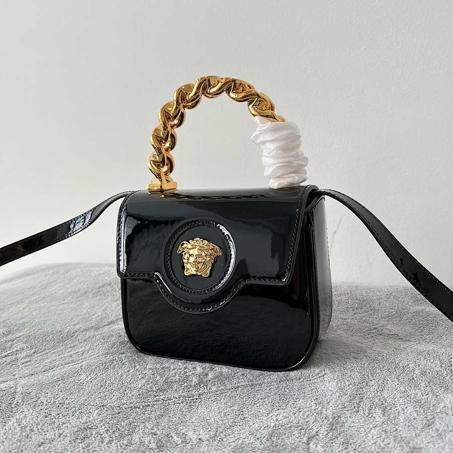 Versace La Medusa Mini Black Patent Leather Top Handle Bag 16cm