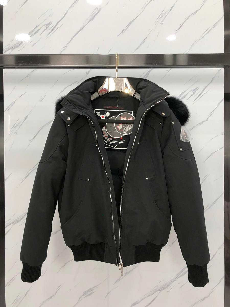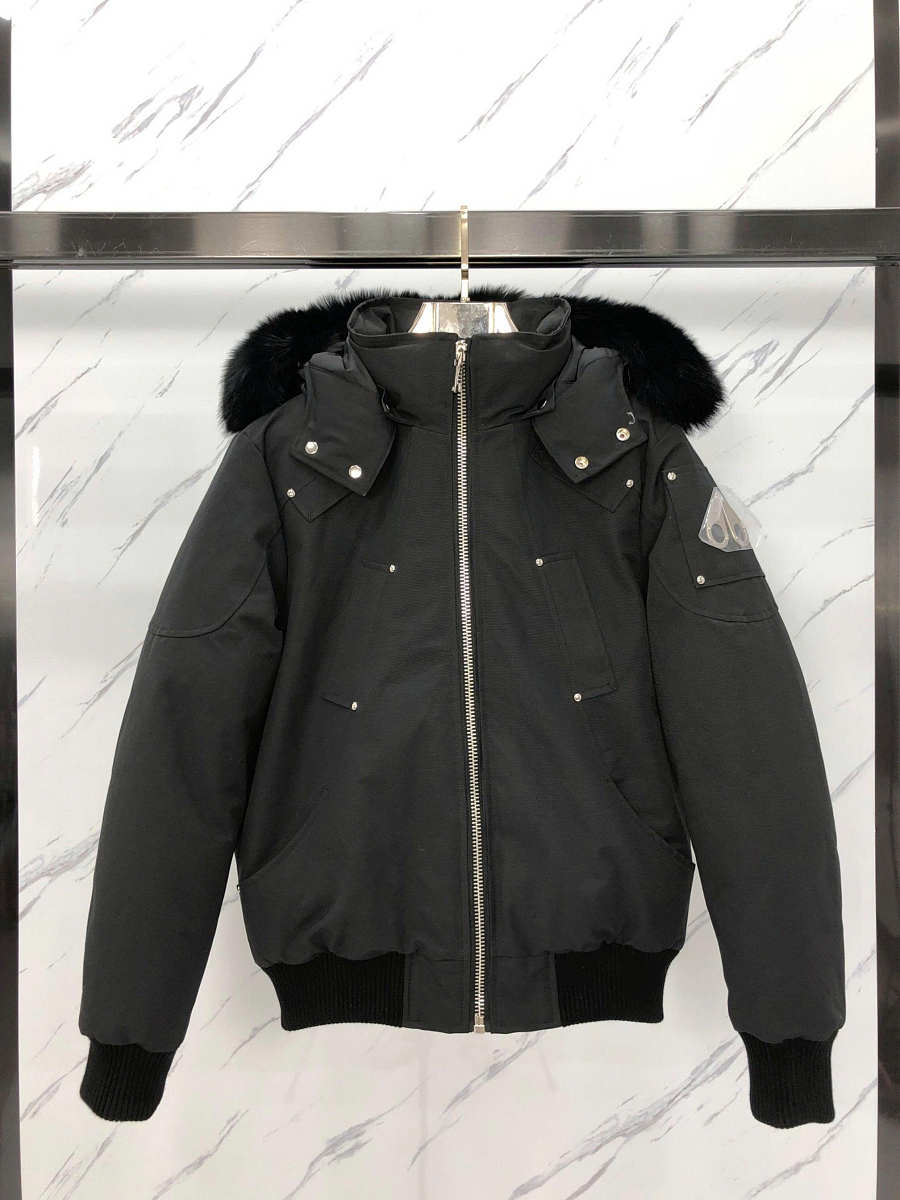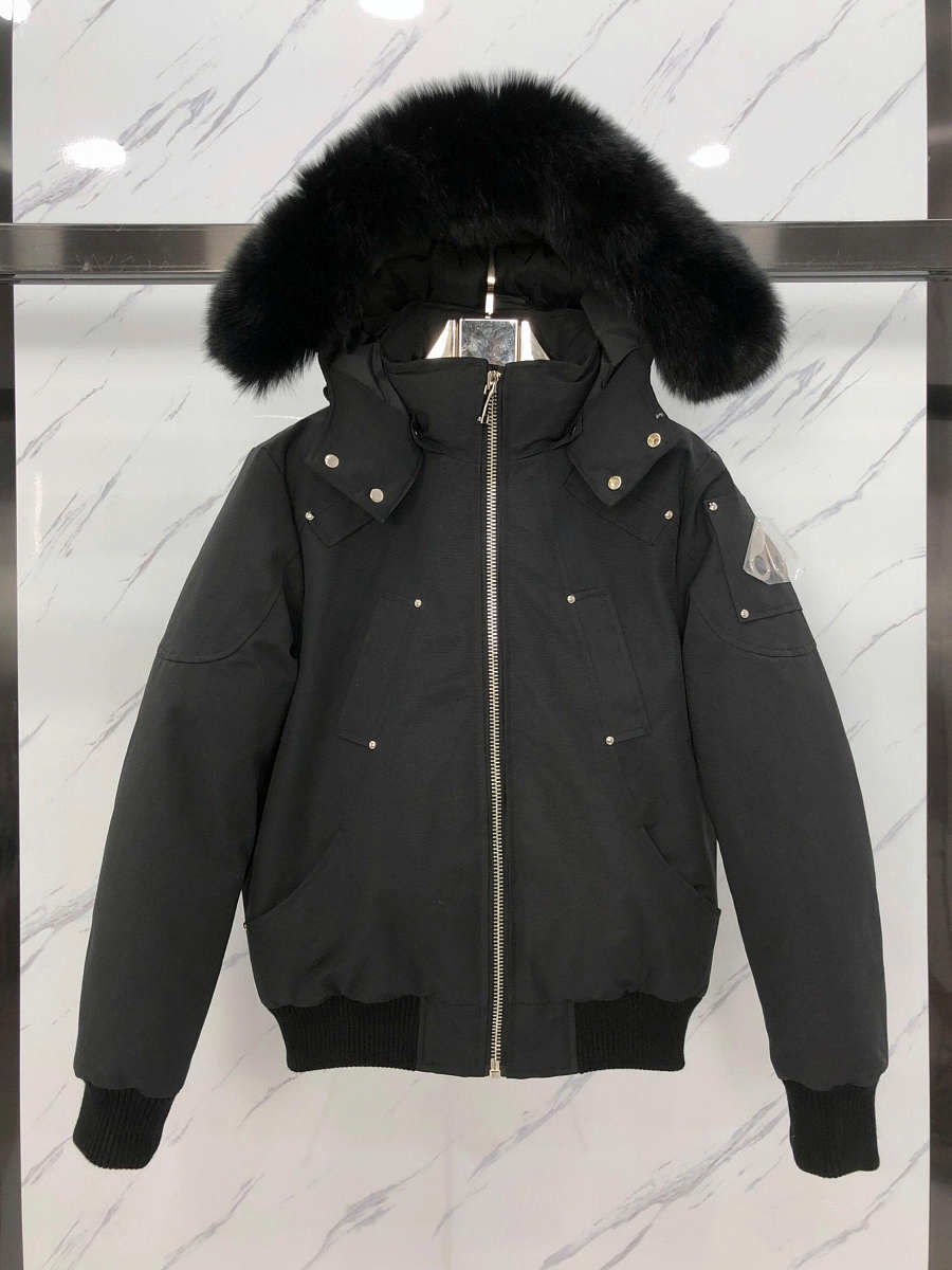 Winter Classic Warmth Moose Knuckles Scissors Down Jacket Rivet Hoodie Coat Black MK2000MB-291