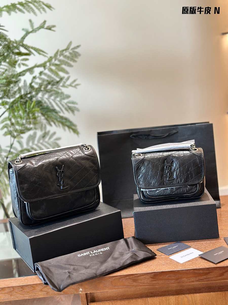 YSL Niki Baby Chain Bag In Crinkled Vintage Leather black color 22cm